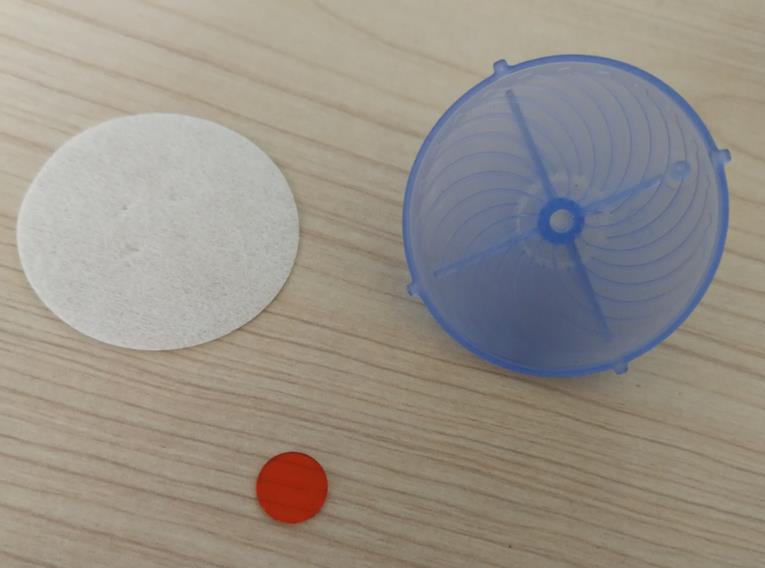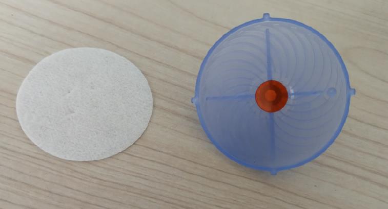 本項(xiàng)目共完成6個(gè)零件的自動(dòng)裝配,其中有2個(gè)注塑件上傘蓋下傘蓋,一PVC片直徑11.5mm厚0.9mm名稱分流片,一直徑40mm無紡布片名稱濕化體,一段導(dǎo)水殼一段導(dǎo)水芯。自動(dòng)裝配過程:轉(zhuǎn)盤式多工位方式,涉及到兩個(gè)塑料料扣合,導(dǎo)水芯導(dǎo)水殼插裝,濕化體模切后自動(dòng)就位。