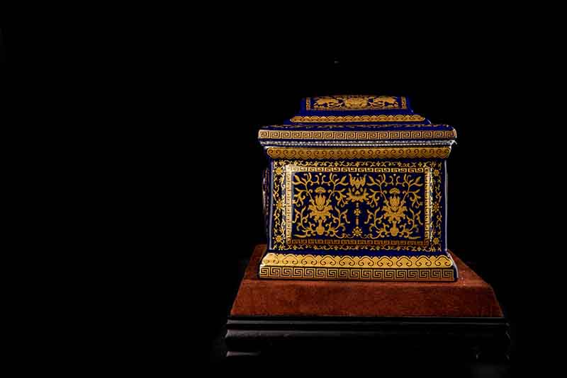這款【吉祥如意】系列產(chǎn)品,目前有幾種顏色釉系列,黃、藍、紅、以及黑。這款產(chǎn)品運用中國古代傳統的吉祥紋飾—“纏枝蓮”?!袄p枝蓮”常運用在陶瓷作為點(diǎn)綴,因其結構連綿不斷,故又具“生生不息”之意,同樣保后代代代繁榮。尺寸:300x230x210mm