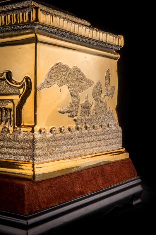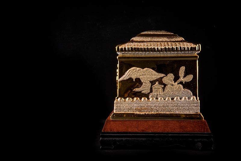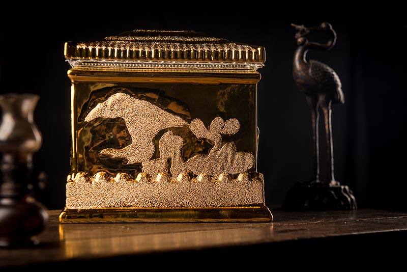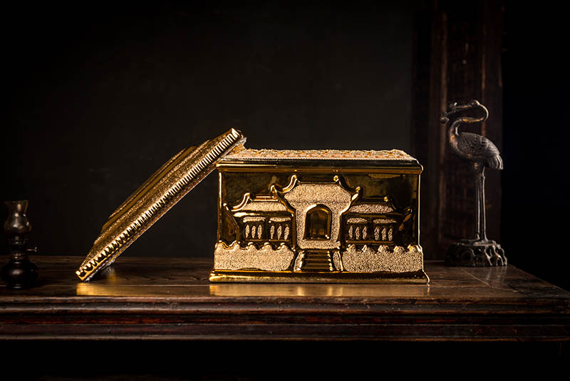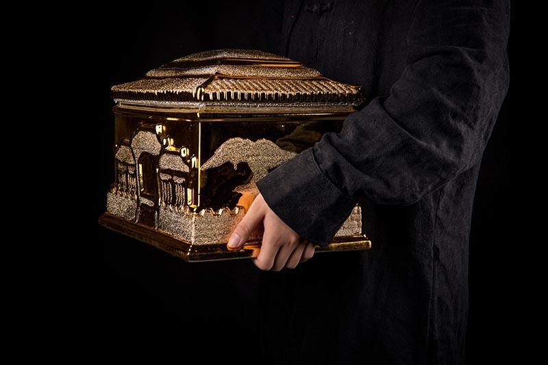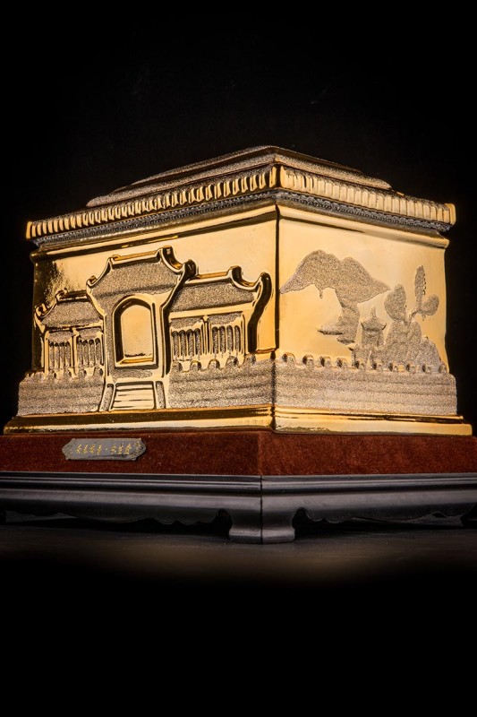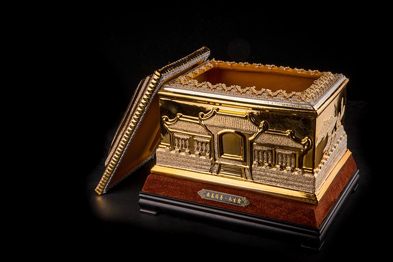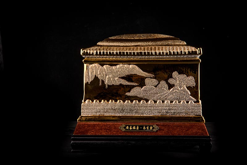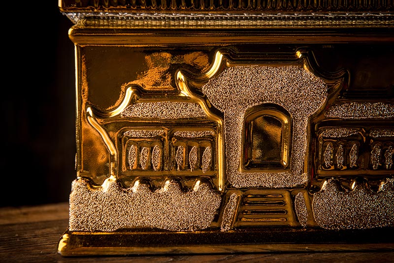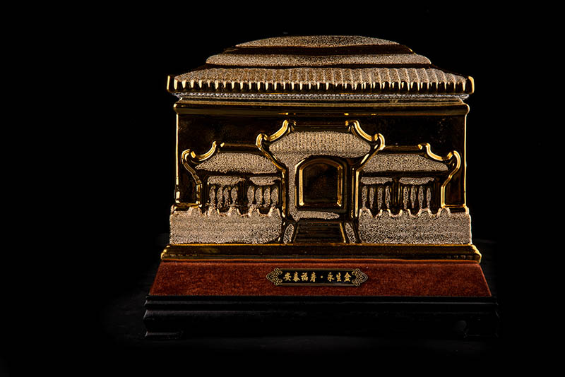 這款【磨砂金金寶盒】整體質(zhì)感出眾,看上去就是富麗堂皇,大氣,同樣是1300高溫煅燒,既有磨砂金的質(zhì)感,又有陶瓷那種光滑如肌的觸感,檔次,品質(zhì)自然而然就能很好的凸顯。這款【磨砂金金寶盒】正面是故宮造型,背面是山,寓意富麗堂皇,子孫后代今后事事有靠山,事事如意。尺寸:360x250x270mm(大)300x230x210mm(?。?/p>