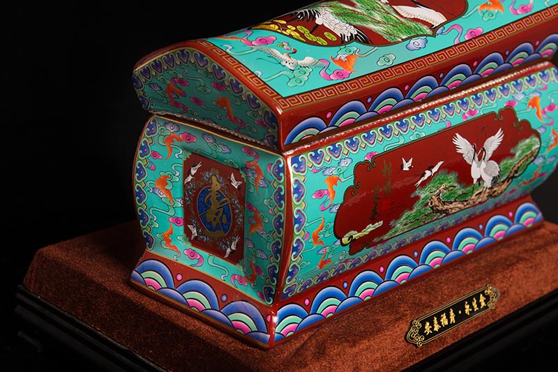 這一款產(chǎn)品采用的是景德鎮獨特工藝粉彩工藝,色彩鮮明,呈色自然。原料用的是 “高嶺土”一種特別土礦資源,“高嶺土”又有高齡之意,與我們產(chǎn)品【仙鶴年年】相得益彰,本款產(chǎn)品運用了仙鶴、松樹(shù)、松鶴延年則寓延年益壽或為志節清高之意。  尺寸:345x200x240mm